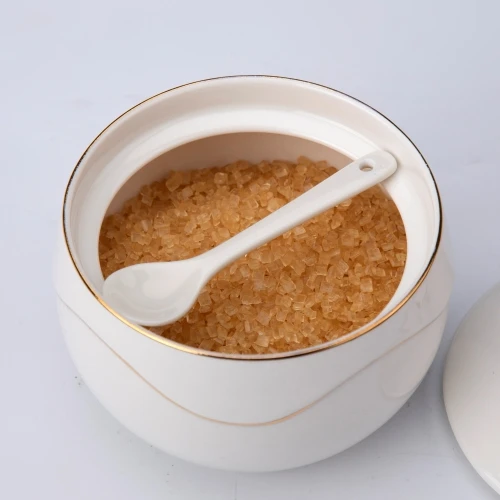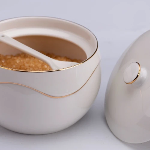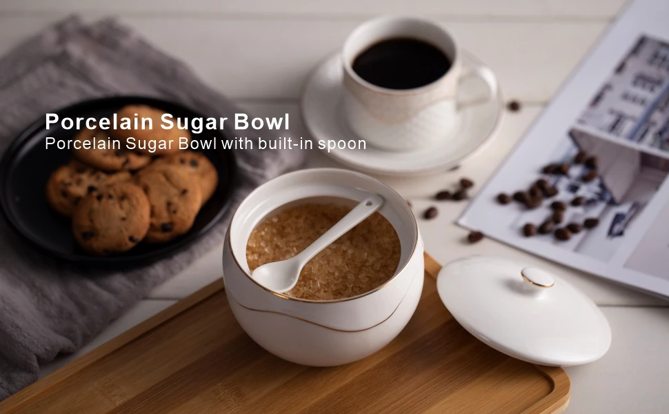 Luxury Porcelain Sugar Jar with Built-in Spoon & Lid for Kitchen 11oz Ceramic